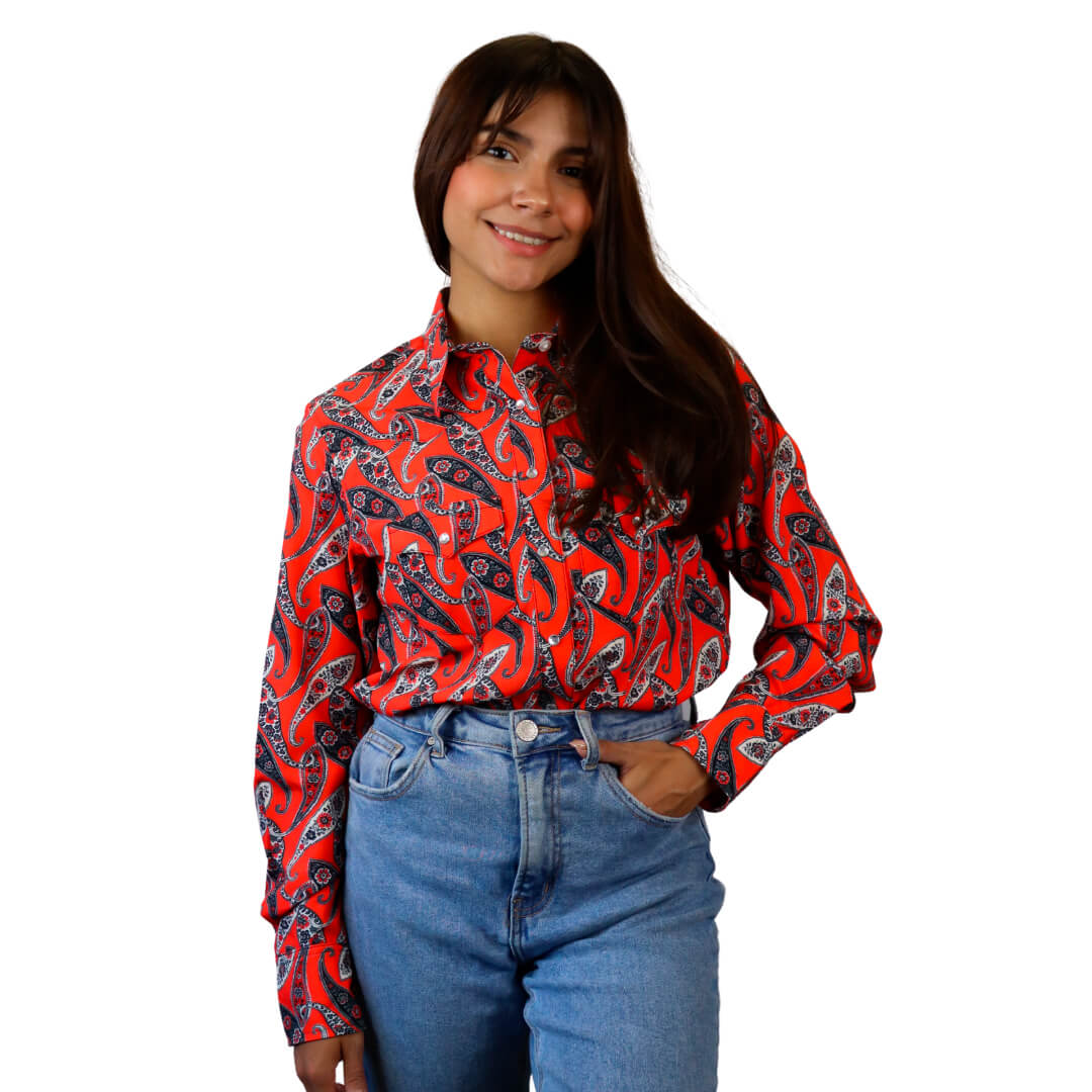 Nuestra camisa estampada para dama está fabricada con poliéster, ofrece frescura y un ajuste perfecto que resalta tu figura mientras mantiene su resistencia al desgaste.