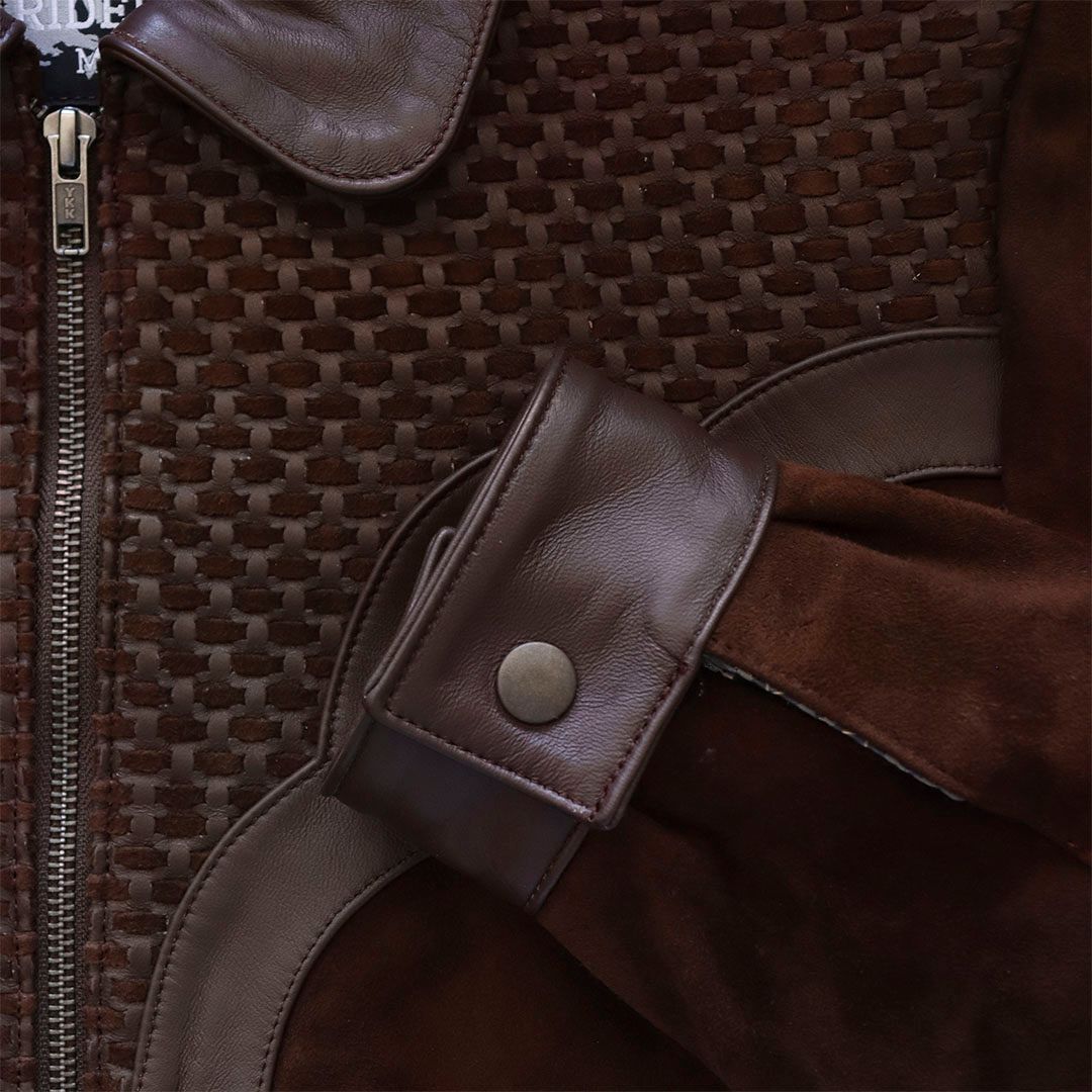 Nuestra chamarra tejida en pecho y bata está fabricada con piel ante de excelente calidad. Su resistencia y durabilidad garantizan que te acompañará durante años. El corte ajustado te brinda un estilo elegante sin sacrificar la comodidad, y su forro interior que se adapta a cualquier clima.
