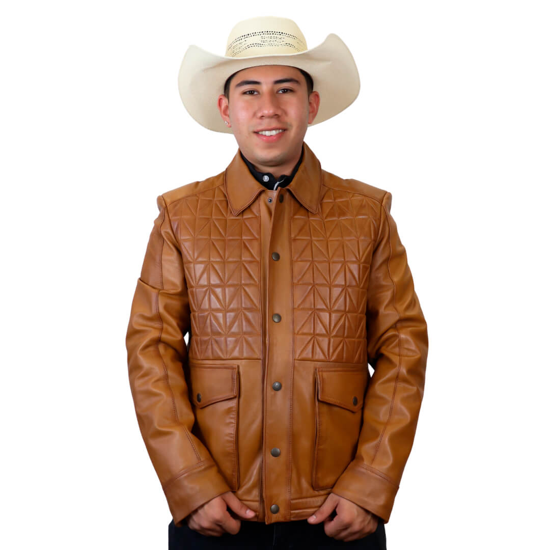 Su color en miel o café le aporta un toque auténtico, ideal para el estilo vaquero. Esta chamarra está diseñada para resistir el ritmo de tu día a día, ya sea en el trabajo, el rancho o la ciudad.